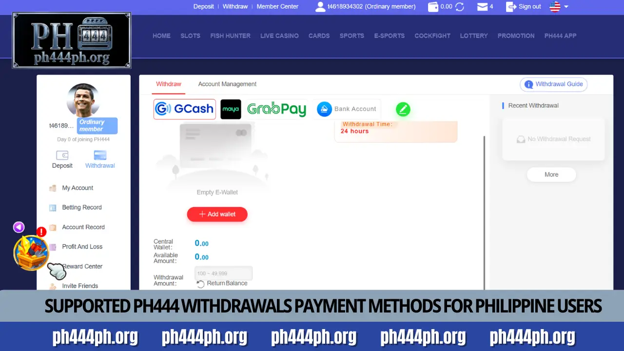 - GCash: As the most widely used e-wallet in the Philippines, this remains the primary choice for PH444 Withdrawals due to its seamless integration.